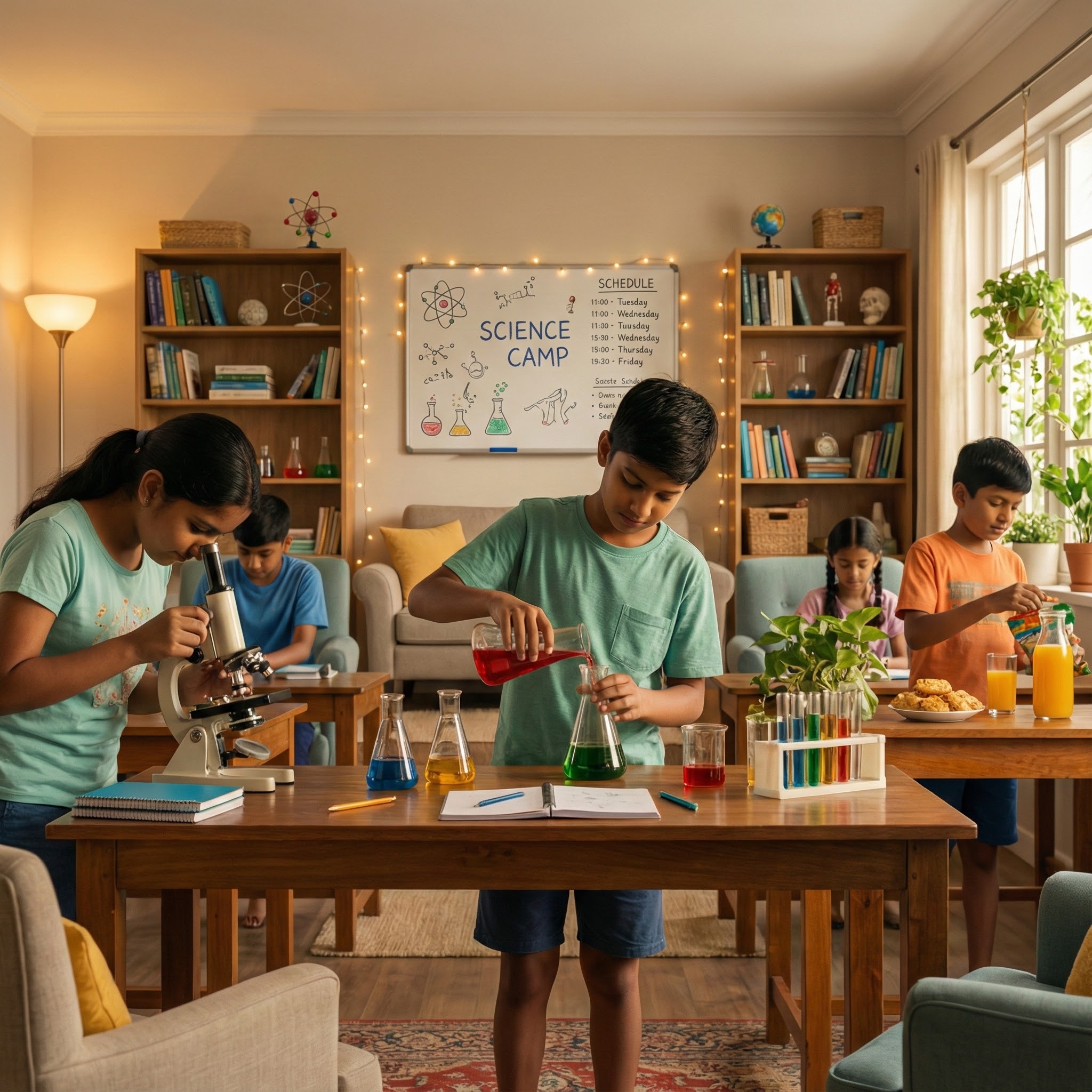 Multi-day camps immerse kids in 3-7 days of labs, projects, and outdoor fun—part of playgroups or standalone. Daily sessions cover core concepts (water, electricity, magnetism, plants, space) with kid-friendly twists: bingo body puzzles, dropper races, colored balloon air demos, and replicable home experiments. Includes certificates, snacks, and skills for quizzes like Homi Bhabha—building exam confidence through fun.